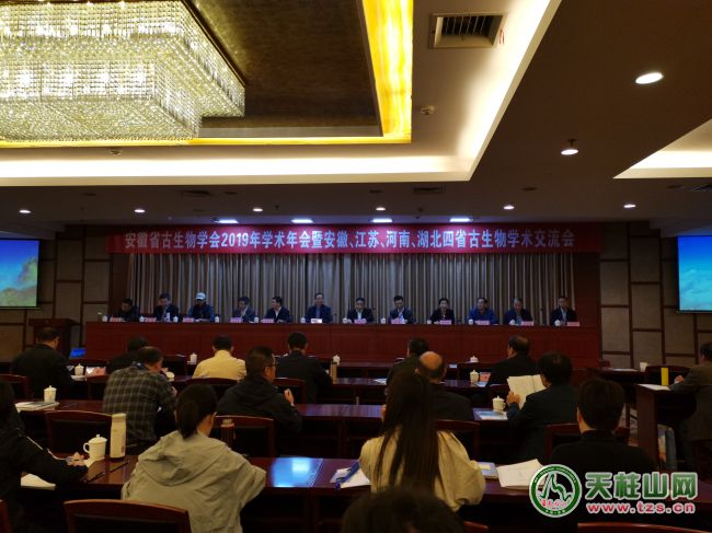 ? ? 2019年10月31-11月2日,安徽省古生物學(xué)會2019年學(xué)術(shù)年會暨安徽、江蘇、河南、湖北四省古生物學(xué)術(shù)交流會在天柱山召開。會議由安徽省古生物學(xué)會、江蘇省古生物學(xué)會、河南省古生物學(xué)會、湖北省古生物學(xué)會和中國古生物化石保護(hù)基金會科普專委會主辦,安徽省地質(zhì)博物館、天柱山地質(zhì)公園管委會和潛山市自然資源與規(guī)劃局承辦。來自江蘇、河南、湖北和安徽的高等院校、科研機構(gòu)、自然資源系統(tǒng)、地質(zhì)公園和地質(zhì)博物館等領(lǐng)域的會員代表、專家學(xué)者和有關(guān)方面負(fù)責(zé)人等共120多人出席會議。中國古生物學(xué)會、安徽省科學(xué)技術(shù)協(xié)會、安徽省自然資源廳和及潛山市政府對會議的召開高度重視,并給予了大力支持。潛山市市委常委、天柱山地質(zhì)公園管委會副主任涂高生到會致辭。
