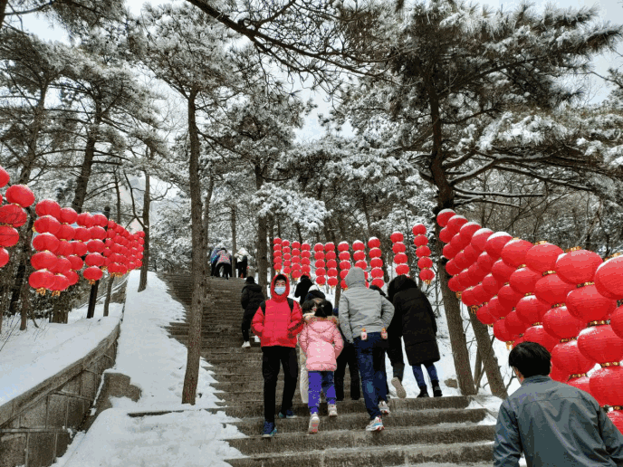 ? ? 辭舊迎新,正月初一,不少人選擇走出家門,去景區(qū)游玩行大運。天柱山景區(qū)為了給游客提供便利安全的服務(wù),特地在除夕前加班加點清除路上積雪。天柱山上的大紅燈籠,為一年一度的新春佳節(jié),增添了濃郁的歡樂氣氛。截止下午四時,天柱山游客量1.08萬人次。